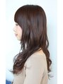 アイロンのミックス巻きで重ならない強めにランダムな毛流れをつくっています。内巻きと外巻きを繰り返して巻いてラフさを出しています。動きが出るよう全体は軽いスタイルに。カラーは7レベルのアプリコットモーブで髪のツヤをより強調!