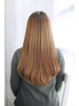 柔らかい色味に毛先だけ巻かれたワンカールスタイルです。ツヤ感があり毛先のまとまりがあるので、扱いやすく人気のスタイルです。