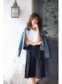 全体はおさまりのよいローレイヤー重めスタイル、ゆるカールが無造作感と女性らしさを♪ひし形シルエット、甘めバング。サイドパート、カラーは深みと透明感を意識したアッシュベージュ巻いたときのオシャレ度UP