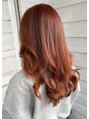 根元をカラー剤で一度明るくしたオレンジです。ブリーチしてないので急激な色の変化などはありません!イロモチや手触りもいいのでオススメです!