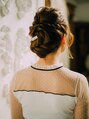 くるりんぱとツイストのアレンジスタイル!センターに集めてボユームの位置を下げて大人らしさをだしました!ラフに崩してキメ過ぎないゆるふわアレンジスタイルになり、おくれ毛もありオフェロ感あるかわいいアレンジです。