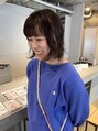 顔まわりを切り込んだウルフスタイル色も透け感のあるパープルでバツっと前髪絵でも重たくみえすぎないようにしました。周りと差をつけたい方に顔まわりのカットをおすすめしてます。