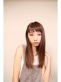 ツヤサラのストレートロングスタイル。深みのあるアプリコットブラウンで艶と透明感をだします。眉上までカットして前髪でお顔の印象をつければオシャレなストレートヘアーに。