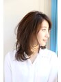 トップにレイヤーを入れて軽くしたヘアーデザイン。肩下のミデイアムの長さでカットして毛先にカールをつけるだけで華やかなイメージになります。