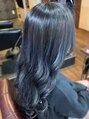 大人気のバレイヤージュ!寒色系のくすみブルーで大人可愛い暗髪に!バレイヤージュとはハイライトとグラデーションを組み合わせたことです。かなりブリーチ範囲が広いのでイメチェンになり透明感のある色を楽しめます^_^ブルーが落ちるとシルバーになります