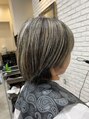 脱白髪染めのお客様。ハイライトをガッツリいれてるので、白髪がかなり目立ちにくいです。94%ダメージレスのファイバープレックスブリーチで、しっかり時間をかけて抜いてます。カットはできるだけ軽く、バランスのいいデザインに☆
