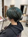 グリーンハイライト刈り上げショート☆五反田美容院