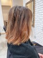 インナーはブリーチして表面はハイライトをいれてます。ハイライトで動きを出し、インナーで色を楽しめます。インナーを薄いピンクベージュに。表面はベージュブラウンに染めました。カットは切りっぱなしのボブで乾かしただけでまとまります。張 明星