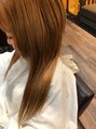 今回紹介するのはカラーで1番明るいベージュで染めました。ダブルカラーなしでもここまで明るく染めることができます。エクステは30束付けています。カットで地毛の毛量を減らしてからなのでなじみは問題ないです。