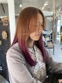 ワンレングスに前髪は流れが出るようにカット。全体にブリーチ後根元はベージュグレーで毛先はビビットなピンクで可愛いスタイルに。