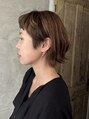 サイドの髪を短くスッキリさせて前髪はワイドに。短めのボブに切ってコンパクトにしてハイライトカラーでベージュの透明感ある仕上がりに。