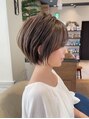カットカラーショート/ショートボブ/レイヤーショート/ヘーゼルブラウン/ボブショート/白髪ぼかし/絶壁解消