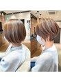 カットカラーショート/ショートボブ/レイヤーショート/ヘーゼルブラウン/ボブショート/白髪ぼかし/絶壁解消