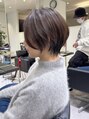 カットカラーショート/ショートボブ/レイヤーショート/ヘーゼルブラウン/ボブショート/白髪ぼかし/絶壁解消