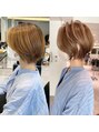 カットカラーショート/ショートボブ/レイヤーショート/ヘーゼルブラウン/ボブショート/白髪ぼかし/絶壁解消