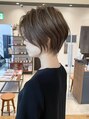 カットカラーショート/ショートボブ/レイヤーショート/ヘーゼルブラウン/ボブショート/白髪ぼかし/絶壁解消