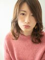 シンプルな 重めスタイル に透明感のでる 「HUE」カラーで、スモーキーオークルに。Aラインシルエットでまとまりやすく簡単スタイリングです。