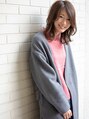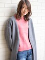 シンプルな 重めスタイル に透明感のでる 「HUE」カラーで、スモーキーオークルに。Aラインシルエットでまとまりやすく簡単スタイリングです。