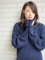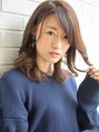 シンプルな 重めスタイル に透明感のでる 「HUE」カラーで、スモーキーオークルに。Aラインシルエットでまとまりやすく簡単スタイリングです。N.のスタイリング剤で仕上げています。