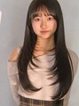 20代30代/デザインレイヤー/うぶバング/ぱっつん前髪/暗髪ロング/ストレートロング/艶感カラー/ダークブラウン/地毛風カラー/透明感/ツヤ/ナチュラル/学生ヘア/抜け感/くびれヘア/ローレイヤー/小顔/フェミニン/こなれ感/縮毛矯正/髪質改善トリートメント