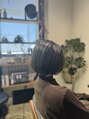 モーブブラウン/ミニマルボブ/切りっぱなしボブ前髪なし髪質改善