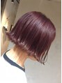 モダンな雰囲気もありつつのピンクパープルカラー!カットは襟足を刈って思いきった切りっぱなしボブスタイル!かわいい!!