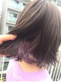 年中人気なインナーカラー!今回は色落ちも考慮してパープルをオン。白っぽくおちてくれるのでおすすめです♪カットも切りっぱなしボブにして外ハネウエットスタイリングに!