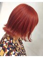 発色の良いビビットなオレンジカラー!オレンジやピンク系よくやらせて頂きますが、最近は赤寄りに染めることが多いです!秋カラーはじめましょ♪