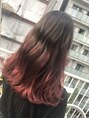 毛先が黄色っぽく抜けた方にグラデーションでガーネットピンクをオン◎