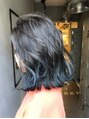 ブリーチ履歴複数回あり。ダークグレーからの、ターコイズ系のブルーを毛先にオン。