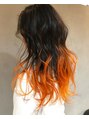 黒オレンジというはっきりカラーでオシャレ度あがります。黒染めなど無しのブリーチ履歴1回でできます!