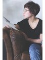 color : シングルカラー「ラベンダーアッシュ」でクスミカラーを再現*どんな人でもトライしやすいナチュラルな外国人風カラーです*cut :ショートマッシュ+ショートバング *最後に「丸メガネ」をかければ出来上がり*小林 崇