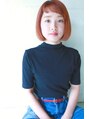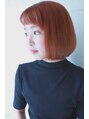 アプリコットオレンジボブスタイル☆ダブルカラー☆斜め前髪☆