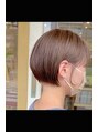 ミニボブ透明感ベージュ耳かけ丸みショートボブオリーブブラウン