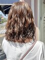 透明感のあるベージュカラーのウェーブパーマです。髪への負担を最小限にパーマしていて3ステップトリートメントもしているので手触りが良くしっとりモチモチです。スタイリング方法も簡単で全体を軽く濡らしてムースを馴染ませるだけで再現できます!