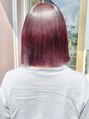 ピンクレッドブラウン 白髪染め 切りっぱなしボブ 美髪