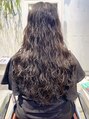 細毛、軟毛でパーマがかかりにくく、落ちやすい髪質のお客様のロングウェーブパーマスタイル。薬剤を細かく塗り分けて髪の負担を最小限に施術しています。