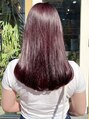 暖色系な色みのベリーピンクブラウンにワンカラーで染めたストレートカールスタイル。透明感と鮮やかさのあるカラーで白髪染めにも対応しています。3ステップトリートメントでしっとりサラツヤな仕上がりにです!