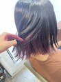 初のインナーとの事でブリーチの抜けも一回だと赤みが残るのでそこを利用して、暖色系の赤紫を入れました!カットはセットしやすい、外はねワンレンボブでカット★これでお出かけ前も楽ちん♪インナーには、イルミナカラーのブロッサムを使用しました!