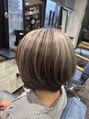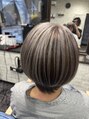 表面のみを明るくすることでダメージも最小限に抑えられハイトーンを楽しめます♪シルバーグレーにすることで自然に白髪もぼかせるのでおすすめ☆コンパクトなショートボブにしました!