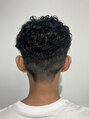 3~6mmのグラデーションでスッキリ刈り上げ、トップは毛流れが活きる長さに。ロッドは1.5~2回転で巻き、細かすぎない自然なカール。フロントからバックに流れるように巻くことで、スタイリングが簡単に。元々癖毛が気になる方にも万能パーマスタイルです。