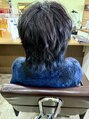 サイドからフロントはマッシュ寄りのミドルウェイトなショートウルフ。ブルーブラックのインナーがアクセントに◎ルフレカラーのラピスで透明感ある発色に。色落ちも楽しめ、光でシルバーにも見えるのが魅力。アイロンで軽く動きをプラス。【都賀/都賀駅】