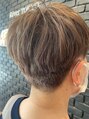 刈り上げショート/グリーンのポイント/明るめグレイカラー