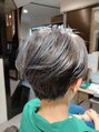 サイドは刈り上げ、えり足はギリギリの長さで限界まですいてます♪白髪染めをしないために、フルブリーチ後にイルミナカラーを♪色が抜けるとミルクティベージュまで明るくなります♪