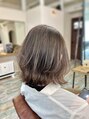 カットは切りっぱなしのウルフボブで表面に少しレイヤーが入っていて動きがでてふんわりする様に!ギリギリ結べる長さです。カラーはベースがブリーチしてあるところにショコラグレージュカラーで透明感があり綺麗なカラー☆