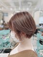 襟足、首元をすっきりさせて頭の形がよく見えるくびれショート☆質感、毛量調整によりふんわり柔らかい印象に!カラーは透明感のある11トーンのスモークベージュ!カラーも明るくしてあげることでより軽い印象になりショートとの相性が良いです♪