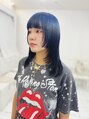 ブルーグレージュのベースにブルーブラックのルーツカラーを☆顔まわりにパツンとライン、フェイスレイヤーたっぷりのデザインレイヤーです◎ミディアム ルーツカラー レイヤー ブルー グレージュ エンドカラー