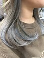 毛先だけをランダムにケアブリーチして、薄めの水色を○全体も赤みのない、明るめのオリーブベージュでカラーして、透明感もあるデザインカラーです!毛先をワンカールするだけで可愛いスタイル○