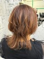 ハイライトを細かく入れて、全体にオレンジベージュをオン◯くびれレイヤーで、裾も長めに残してるので、巻き方次第ではウルフカットのような仕上がりにも出来ます!オイルとバームを混ぜて、程よいセット力でスタイリングしてます!