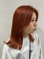 ブリーチをしたベースに、アプリコットよりのオレンジをオン◯赤みを出すことで、色持ちも◯暖色が好きで、少しビビットな色みにしたいかたにオススメです!